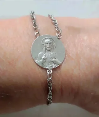 Pulsera plata de ley con perlas de rio blancas 16 euros Pulsera plata de ley con perlas de rio grises 16 euros Pulsera plata de ley con escapulario Virgen De Begoña y Sagrado Corazon 20 euros