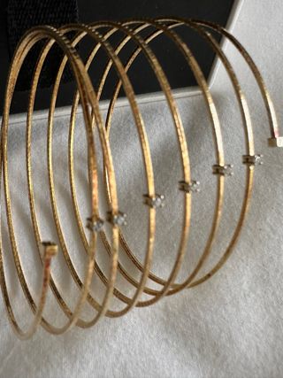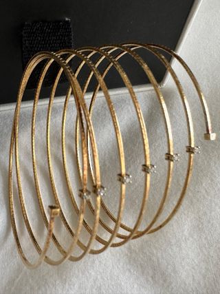 Elegante pulsera dorada de la marca Secresy. Un accesorio que aporta un toque de luz a tu estilo. - Diseño abierto. - Adornada con pequeños detalles brillantes.