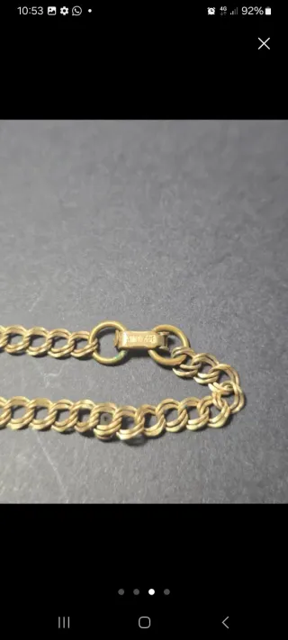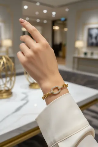 Elegante pulsera con un diseño de eslabones dorados y un detalle central adornado con circonitas brillantes. - Eslabones grandes y llamativos. - Centro ovalado con incrustaciones de circonitas. - Acabado dorado. - Fabricado en acero quirúrgico - Resistente al agua y al deslustre - Hipoalergénico - Totalmente nuevo sin usar