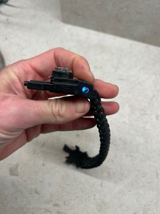 Pulsera de supervivencia con brújula integrada. Un accesorio práctico para actividades al aire libre. - Diseño en color negro. - Brújula con detalles en verde. Linterna Y utensilio de corte