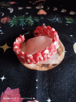 Pulsera paracord, color rojo y blanco, largo 21 cm, cierre de hebilla, hecha a mano.