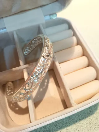 Elegante pulsera de plata con un intrincado diseño calado. Se incluye un joyero para guardarla. Preciosa para 🎁 - Pulsera de plata. - Diseño calado. - Incluye joyero.