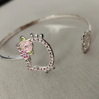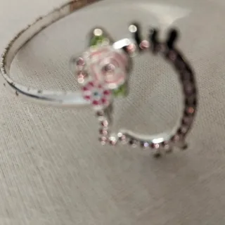 Preciosa pulsera de Hello Kitty con un diseño encantador. - Detalle de flor y corona. - Adornada con pequeñas piedras rosas.