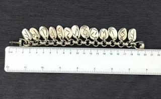 Pulsera con colgantes de runas de estilo vikingo. - Diseño con múltiples amuletos. - Acabado plateado.