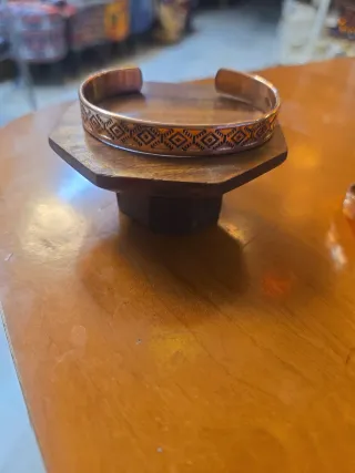 Pulsera de cobre puro con un diseño grabado. - Diseño geométrico. - Material: Cobre.