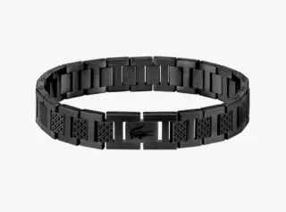 Pulsera de la marca Lacoste en color negro, presentada en su caja original. - Diseño elegante y moderno. - Incluye la caja de presentación.