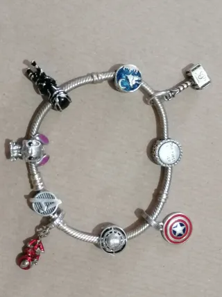 Pulsera de plata 925 con varios charms temáticos de MARVEL. - Diseño de la marca MARVEL. - Acabado plateado y multicolor.
