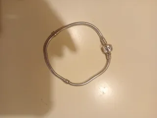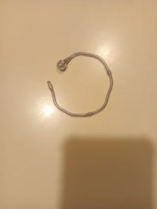 Elegante pulsera Pandora con dos charms. - Diseño de cadena tipo serpiente. - Un charm esférico con diseño intrincado. - Otro charm con forma de cruz. Precio original en la web de Pandora: 60€ la pulsera y 20/30€ por charm: 120€ aprox Tiene bastante tiempo pero la he limpiado con un producto especial para limpiar plata y se ha quedado como nueva La vendo porque no la uso La pulsera mide 17,5 cm