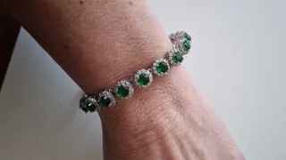 Elegante pulsera de plata 925 con circonitas color esmeralda. La vendo a la mitad de su precio original. - Diseño atemporal.