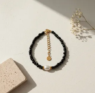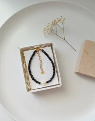 Pulsera Selene Perla Negra Hecha a Mano