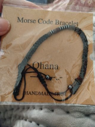 Preciosa pulsera artesanal con el código Morse de la palabra Ohana. Es una pieza única y delicada. - Elaborada a mano. - Diseño discreto y elegante. - Material: hilo y cuentas. -Ohana significa familia -Precintada -Unisex La marca es aleatoria porque wallapop obliga a elegir una