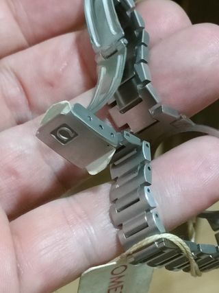 Pulsera de metal plateado de la marca Omega. Modelo dynamic mujer Nuevo, referencia en las fotos - Cierre desplegable. - Diseño de eslabones. - Logo de Omega grabado en el cierre. 19,5cm de circunferencia