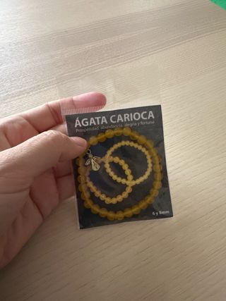 Pulsera Ágata Carioca con Ángel. No tiene marca.