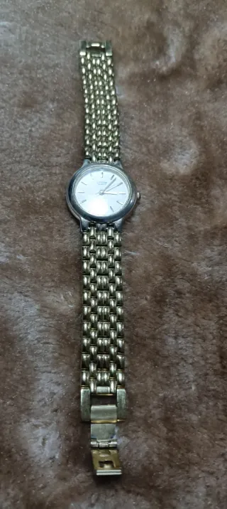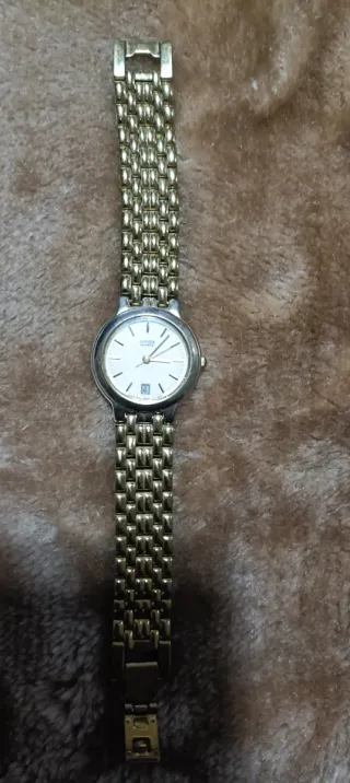 Elegante reloj de pulsera Citizen para mujer con una combinación de colores dorado y plateado. - Diseño clásico y versátil. - Correa de eslabones metálicos.