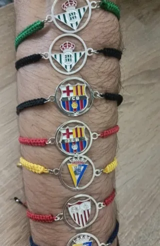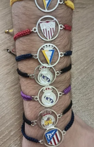 Conjunto de pulseras con escudos de equipos de fútbol. - Diseños variados con detalles de equipos. - Cuerdas trenzadas en diferentes colores.