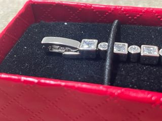 Elegante pulsera con circonitas. Es una pieza vistosa y delicada. - Diseño de circonitas cuadradas. - Cierre de tipo broche.