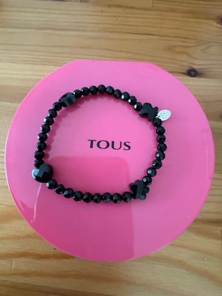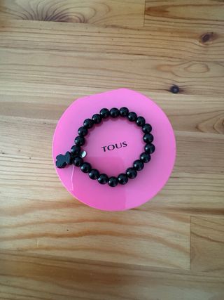 Elegante pulsera de la marca Tous con cuentas de ónix. - Diseño con charm de oso. - Cuentas de ónix.