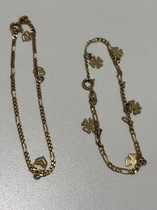 2 Pulseras chapadas en oro 18k con dijes