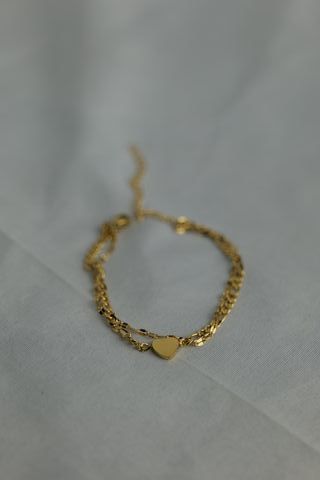 Elegante pulsera con un diseño de doble cadena y un delicado corazón. - Acabado dorado. - Cadena ajustable para un ajuste perfecto. - Diseño moderno y versátil.