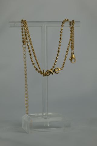 Pulsera doble cadena Love dorada