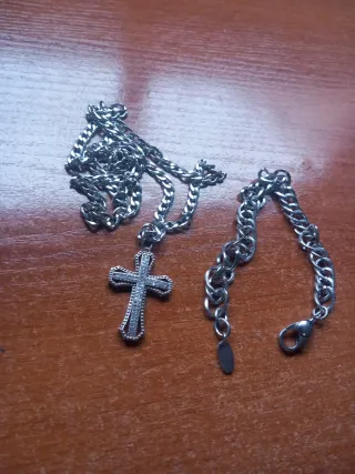 Collar con colgante de cruz plateada + pulsera