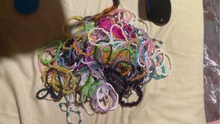Conjunto de pulseras elásticas de cuentas, perfectas para añadir un toque de color a tu estilo. - Diseños variados. - Material elástico para un ajuste cómodo. - Cuentas pequeñas y brillantes. - Se incluyen además pulseras que brillan en la oscuridad!