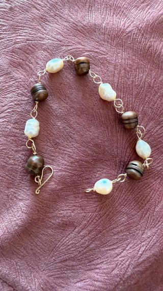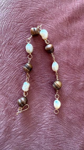 Elegantes pulseras adornadas con perlas de diferentes tonalidades. - Perlas de forma irregular. - Cuentas de perlas marrones y blancas. - Cierre de mosquetón.