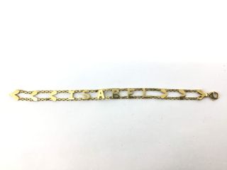 El precio mostrado es el de venta en nuestra tienda. El precio de este producto en nuestra página web puede ser diferente. Este artículo está disponible en nuestra tienda de Logroño. pulsera oro 18k CC062_E592299_0 es un objeto que se ofrece en estado muy bueno. Todos nuestros productos cuentan con garantía de 3 años y un plazo de devolución de 14 días. Gramos: 6.72 | Marca: Sin marca | Modelo: Sin modelo | Contraste: Si | Tipo de oro en kilates: Oro primera ley (oro 18k) | Detalles joya: Pulsera de oro de 18k con letras isabel | Piedras: 0 | Peso piedras: 0 | Genero-tipo: Unisex | Piedra con calor: 17 | Tipo de piedra: Sin
