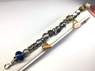 Bonita pulsera con varios dijes. - Diseño con tortuga y delfines. - Dijes con forma de corazón y cuentas brillantes.