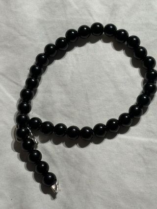 Elegante pulsera con cuentas de onix y detalles en plata 950(mas pureza) - Diseño clásico y atemporal. - Combina el negro profundo del onix con el brillo de la plata. -20cm.