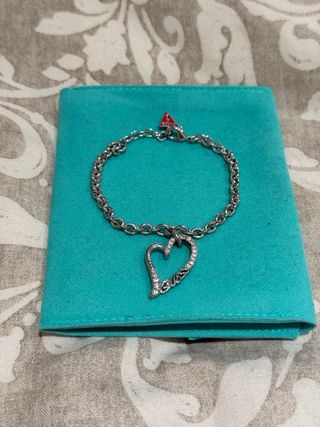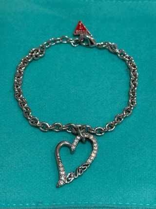 Elegante pulsera de Guess con un diseño de corazón adornado con circonitas. Fabricada en acero plateado, es un accesorio perfecto para añadir un toque de brillo a tu estilo. - Diseño de corazón con circonitas. - Cadena de eslabones. - Cierre seguro.