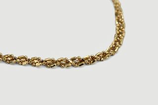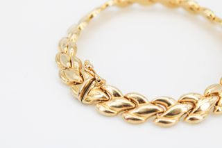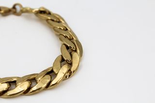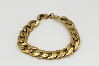 Elegante pulsera estilo Franco, elaborada en oro laminado. - Diseño robusto y llamativo. - Cierre seguro y fácil de usar. - Acabado brillante. Medidas: 21,17,15 cm Largo 4mm