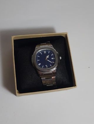 Elegante reloj de pulsera con detalles plateados y esfera azul. Nuevo. - Diseño moderno y sofisticado. - Correa de metal. - Caja de presentación incluida.