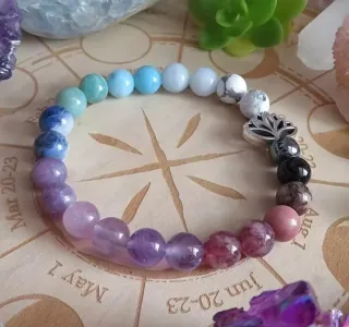 Pulsera anti ansiedad con piedras naturales que combinan tonos azules y morados. Un accesorio único para tu día a día. - Piedras de cuarzo y amatista. - Diseño con dije de loto. - Elaborada con hilo elástico resistente. SI TE QUEDAS 3 MODELOS DE PIEDRAS POR 18 EUROS LAS 3.