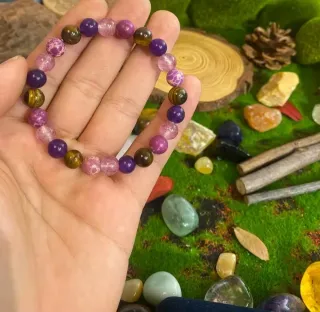 Pulsera artesanal con piedras naturales, diseñada para ayudar a reducir el estrés y mantener el equilibrio mental. - Piedras de amatista y cuarzo rosa. - Incluye piedras de ojo de tigre. - Beneficios: Reducción del estrés, calma, equilibrio mental y mejora de la comunicación. SI TE QUEDAS 3 MODELOS DE PIEDRAS POR 18 EUROS LAS 3.