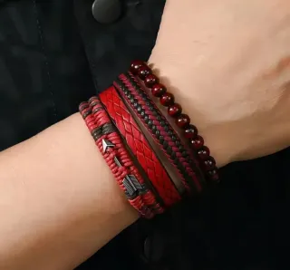 Conjunto de pulseras de cuero con detalles metálicos y cuentas de madera. - Diseño multicapa. - Cierre ajustable. - Estilo bohemio y moderno. SI TE QUEDAS 3 MODELOS DE CUERO POR 20 EUROS LAS 3.
