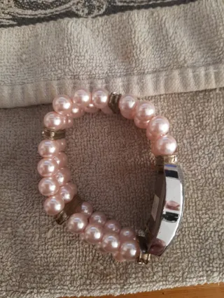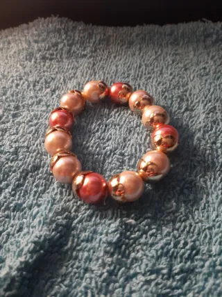Elegante pulsera con perlas de tonos rosados y detalles dorados. - Perlas con acabado nacarado. - Elementos metálicos en tono dorado.