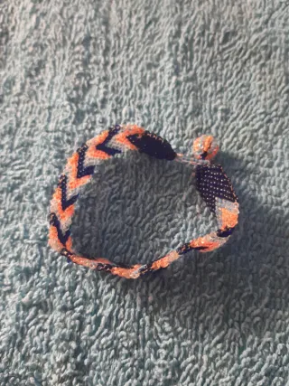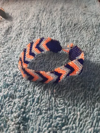 Pulsera artesanal con un diseño de espiga en tonos azul y naranja. - Elaborada con pequeños granos. - Cierre de nudo. - Diseño único. De regalo con cualquier compra