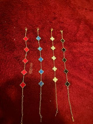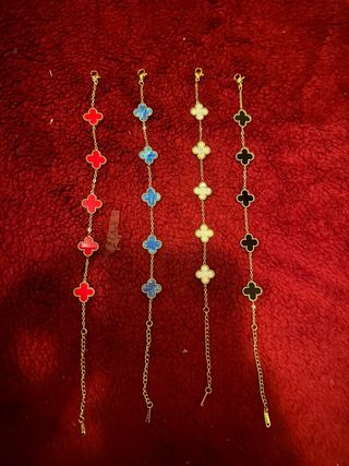 Conjunto de cuatro pulseras con diseño de trébol. precio X Los 4;) - Fabricadas en acero inoxidable. - Bañadas en oro. - Cierre de mosquetón.