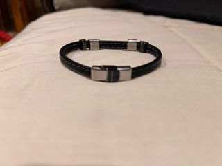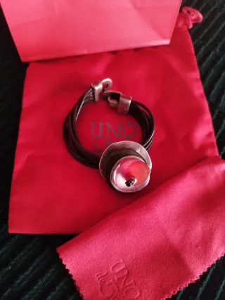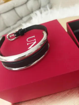 Elegante pulsera de la marca Uno de 50, con un diseño moderno y versátil. Nunca usada a estrenar en su caja original. - Combina cuero negro con detalles metálicos plateados. - Cierre de hebilla ajustable. ❗ENVIO solo en punto de recogida INPOST, no hago Correos!!