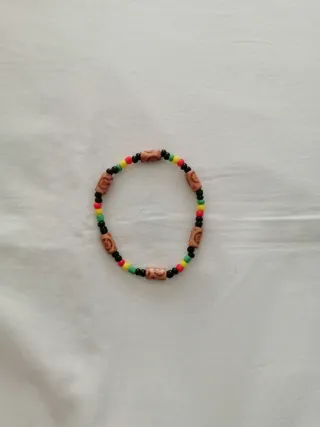 Pulsera extensible con cuentas de colores y detalles de madera. - Diseño único y llamativo. - Perfecta para añadir un toque de estilo. - Materiales de calidad. - Hecho a mano. - Artesania Local.