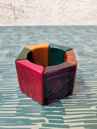 Pulsera elástica con eslabones de diseño geométrico y acabado brillante. Marca desconocida (tenía que poner una para subirla) - Diseño de eslabones rectangulares. - Combinación de colores vibrantes. - Estilo llamativo y moderno.