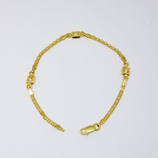 El precio mostrado es el de venta en nuestra tienda. El precio de este producto en nuestra página web puede ser diferente. Este artículo está disponible en nuestra tienda de Mataró. pulsera oro 18k CC072_E428129_4 es un objeto que se ofrece en estado excelente. Todos nuestros productos cuentan con garantía de 3 años y un plazo de devolución de 14 días. Diamante: No | Estado producto: No | Piedra con calor: 19 | Tipo de piedra: Sin piedra | Tipo de cierre: Mosqueton | Piedra: No | Gramos: 3.57 | Marca: Converters | Modelo: Ref.458.01168-19 | Contraste: Si | Tipo de oro en kilates: Oro primera ley (oro 18k) | Detalles joya: Re