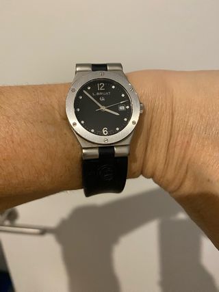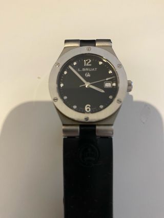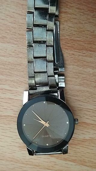 Reloj de pulsera con diseño moderno y elegante. - Esfera negra con detalles plateados. - Correa de caucho negra. - Bisel plateado.