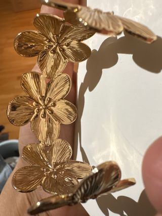 Elegante pulsera con diseño de flores. - Fabricada en 100% acero. - Acabado brillante. - Diseño floral detallado.