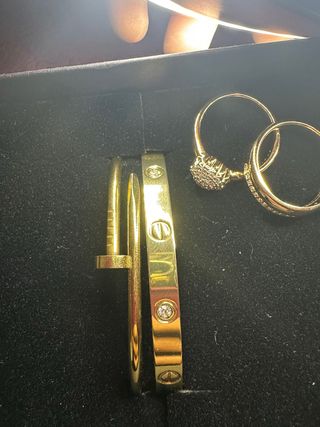 Elegantes pulseras bañadas en oro. Tallas: 14/16/18 Precio Es x los dos - Diseño icónico con tornillos. - Acabado brillante.