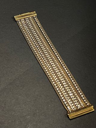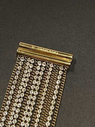 Elegante pulsera de la marca Swarovski con un diseño de múltiples cadenas adornadas con cristales brillantes. - Acabado en tono dorado. - Diseño de varias filas de cristales.