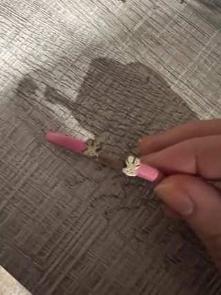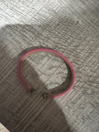 Pulsera de la marca Tous con detalles en plata. - Diseño con motivo de osito. - Material de cuero. - Color rosa. tiene un lado un poco pelado del cuero