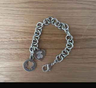 Elegante pulsera de la marca Tous con un diseño delicado. De acero. - Charm en forma de corazón con el oso Tous grabado. - Charm adicional con la silueta del oso Tous. - Cadena de eslabones plateados. - Cierre de mosquetón.