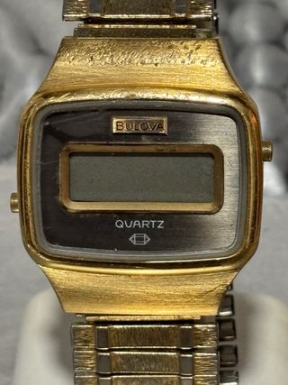 Este reloj Bulova vintage combina tonos dorados y plateados en su diseño. NO FUNCIONA, desconozco el motivo Reloj bastante antiguo , difícil de encontrar - Diseño de pulsera. - Esfera digital.